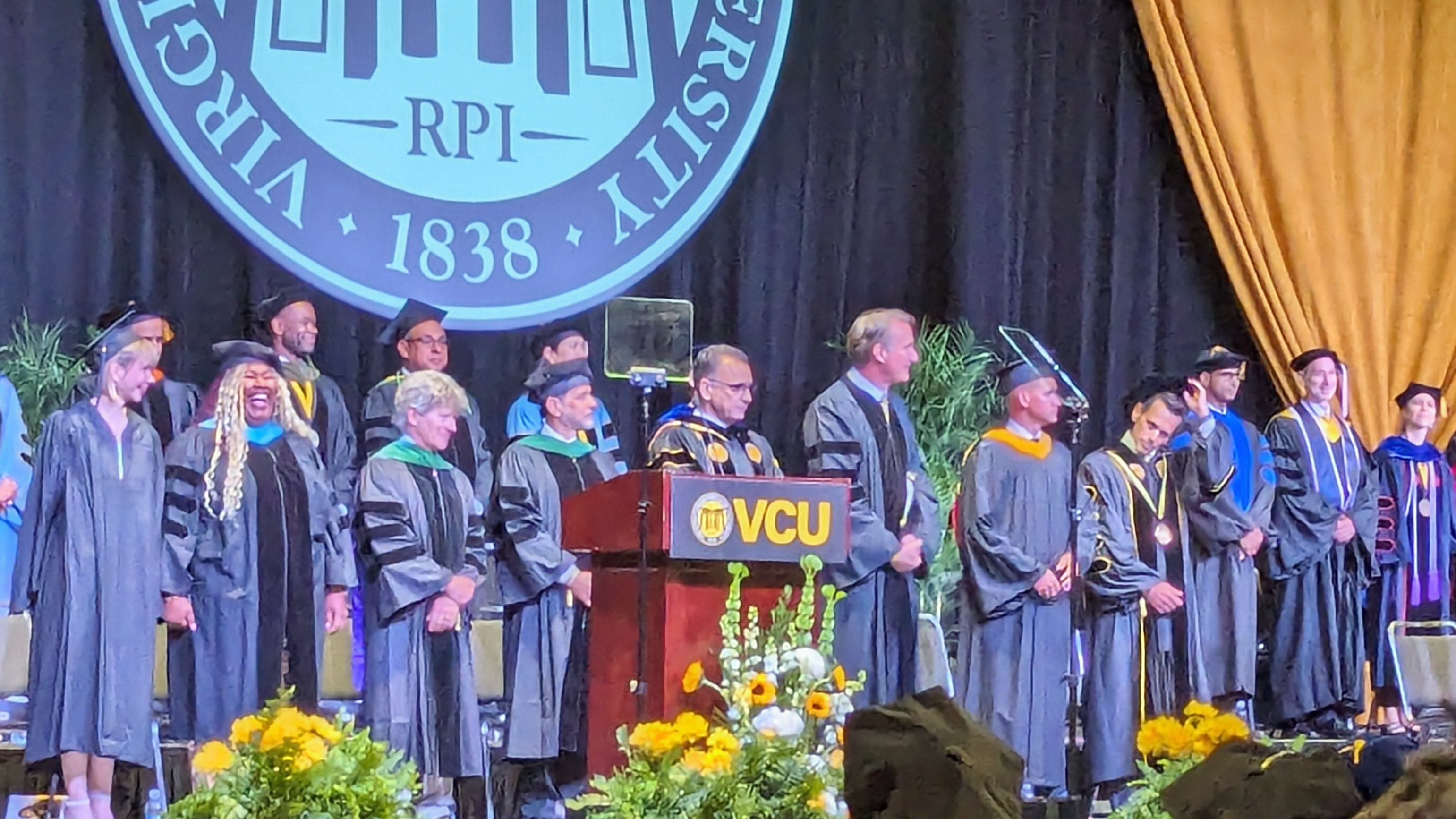 Virginia Governor Glenn Youngkin served as the commencement speaker. Before the campus raid, Youngkin declared that he would not permit encampments on Virginia campuses. Subsequently, VCU Police, Richmond Police Department, and Virginia State Police dispersed a protest and arrested 13 individuals with trespassing and unlawful assembly for allegedly violating school regulations.